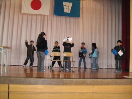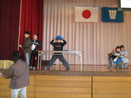 来週の15日(火)の朝会での発表を目指して,劇の練習を行っています。