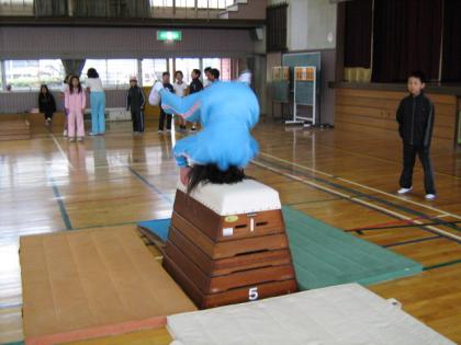 まずは開脚跳び,次に抱え込み跳び,そして台上前転。