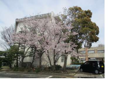 今、校門の桜が満開です!