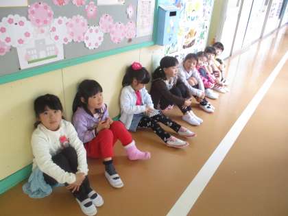 一人一人保健の先生の指示で指をさします。