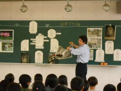6年生は5時間目に「奈良・京都のお話を聞く会」を開きました。講師として原先生をお招きし,仏像の種類や特徴,なぜ仏像が作られたのかなど,さまざまなお話をしていただきました。