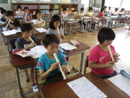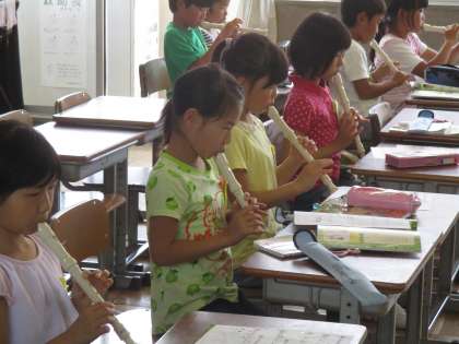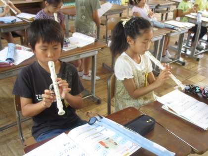3年2組がリコーダーの練習をしました。