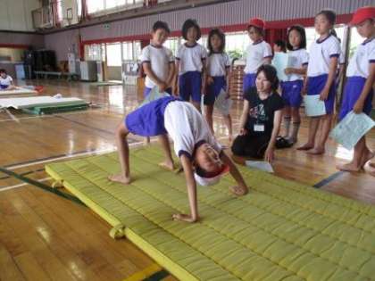 前転や後転、開脚前転や開脚後転、ブリッジにかえる倒立などを練習しました。