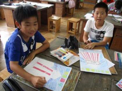 子どもたちは描いたポスターがどこに貼られるのか気にしていました。