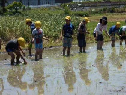 4年生が総合的な学習「米作り」の授業で田植えを行いました。