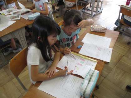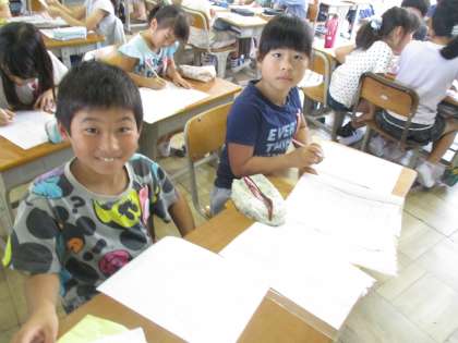 2年生は先週行った校区探検の報告会の準備をしました。