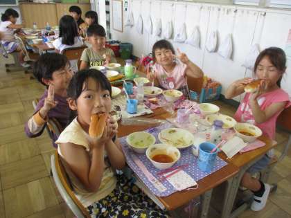 上手に食べているかなあと2年生の教室をのぞいてみると、みんなきちんとはさんで食べていました。