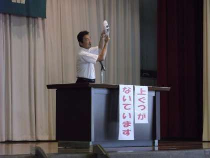 朝会で校長先生より「上靴のかかと」のお話がありました。