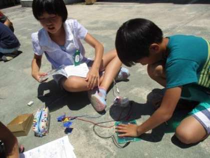 光電池の向きを変えたり、日陰を作ったりと条件を変えて電流の強さを計測しました。