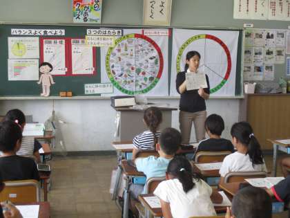 4年2組で栄養教諭の宇佐実先生が食の授業を行いました。