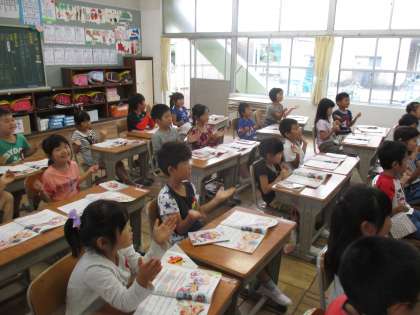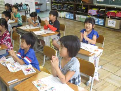 先生がリズムをまちがえると、子どもたちはもっと楽しそうでした。