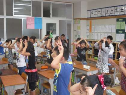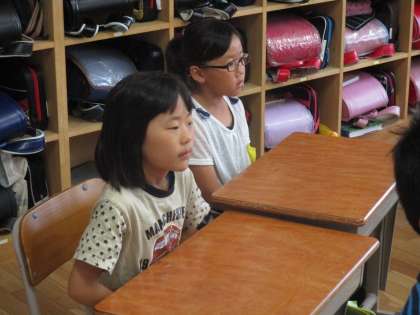 3・4年生の子どもたちはティモシー先生は初めてだったので、初めはちょっと緊張気味。