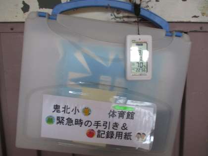 本校では熱中症指数計を「職員室の外」と「体育館」に設置しています。