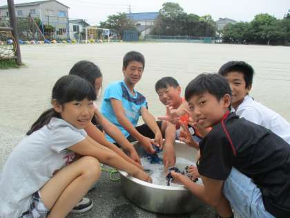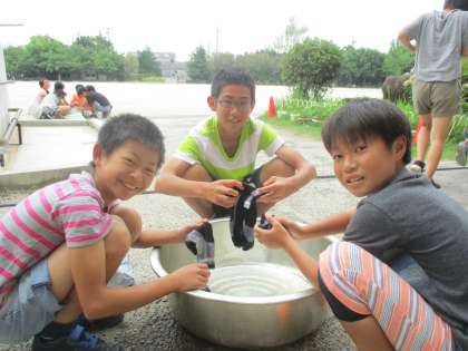 手洗いでは「汚れの確認」「洗う」「すすぐ」「絞る」「干す」という流れを体験できます。