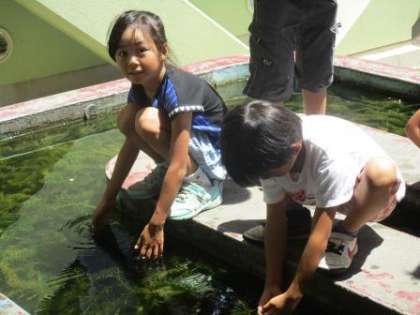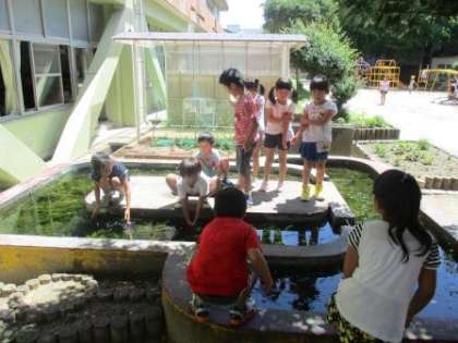 放課になるといつも水の中をのぞいている1年生がたくさんいます。