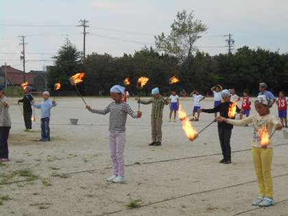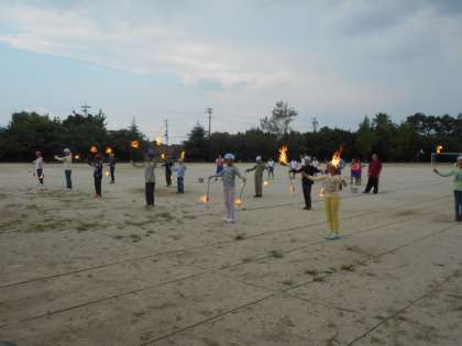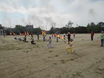 今日は,実際に火をつけて行うリハーサルです。突然降り出した雨にも負けず,しっかりとやりきりました。