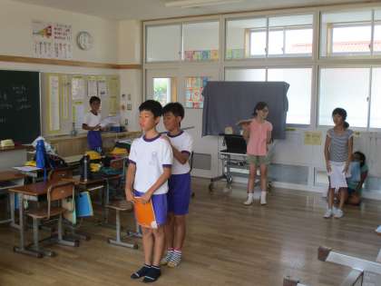 自己紹介や日本の学校生活について説明した後、英語劇「浦島太郎」を行います。