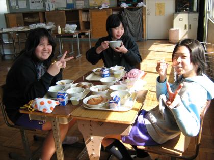 「お代わりはあまりないよ。」の声に「え〜っ。」6年生にしては、少し少なかったようですが、楽しく美味しく食べることができた卒業お祝い給食でした。