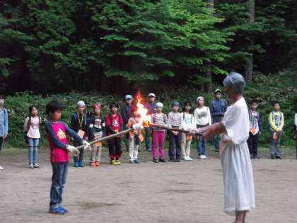 まだ明るいうちに始まったキャンプファイヤー。