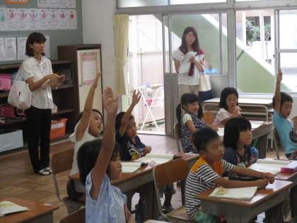 保育園の先生が小学校の様子を見に来てくれました。
