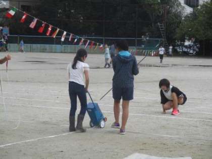 天気が心配されましたが、午後から4〜6年が運動会の準備をしました。