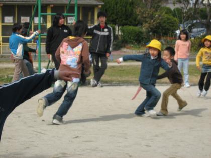とてもよい天気の中で、お別れ会第2弾がありました。今日は、すべて外。日焼けを気にする担任をよそに、子どもたちは元気に走り回っていました。