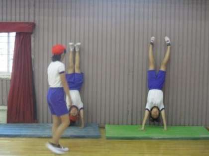 飛び前転に側方倒立回転に倒立。
