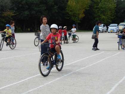 この訓練後,3年生は公道を乗ってもよいことになっていますが,まだ不安定だったり,新しい自転車に乗り慣れていなかったりする子は,公園等の広い場所で,もう少し練習するとよいと思います。子どもたちがより安全に自転車に乗れるように,今回の訓練の様子をご家庭でもぜひ話題に出してください。
