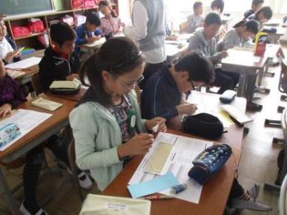 点字体験では教えてもらった後、自分の名前や文章を打ちました。