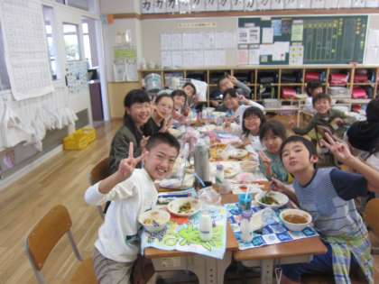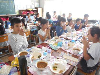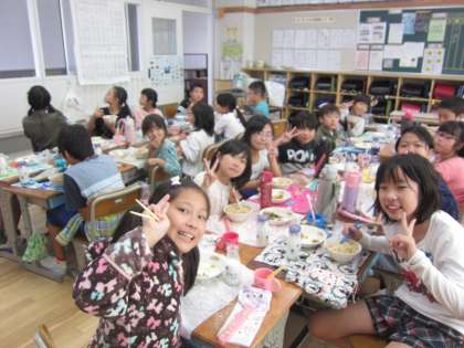 「3年生にかっこいいところをみせたい」と言って,はりきって給食の準備をしたり,給食をおかわりして食べていたりする4年生もいました。