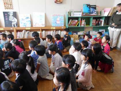 5年生がペアの2年生に読み聞かせをしてくれました。たくさんの児童が楽しみにしていて、大盛況でした。