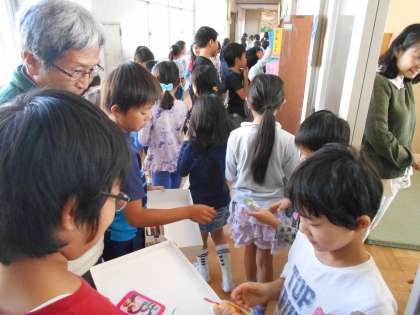 5年生がすらすら読んでくれるので、2年生が聞き入っていました。最後にしおりをもらって大喜び。5年生ありがとう♪