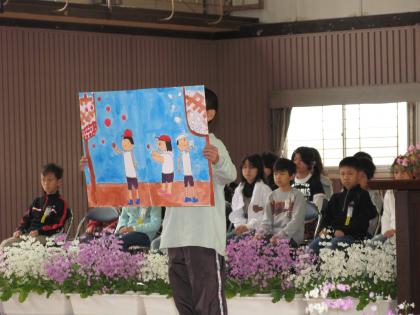 入学式で,平成20年度前期児童会役員(総務委員)がデビューしました。