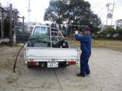 タイヤブランコのロープが摩耗したのですぐ修理に出しました。