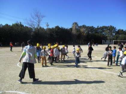 黄色帽子チームと帽子なしチームの対戦です。