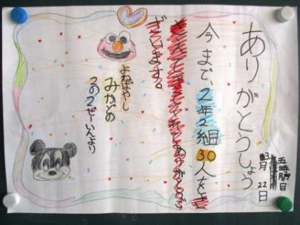想い1 公開日 2017/03/24 更新日 2017/03/24 学校からのお知らせ 最後の朝の教室です。 担任から子どもたちへの想い。 子どもたちから担任への想い。 一年間で培われたそれぞれの「想い」がそこにはある。 担任は何を考えながら板書を書いたのだろう。 子どもたちは何を思いながら感謝状を渡したのだろう。 最終日まで外せない掲示物は担任が一年かけて伝えたいこと。 今日を過ぎれば、この板書や掲示物はすぐに消されます。 でも心の中には確実に刻み込まれています。 いいね(0)