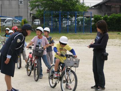 常滑警察署の方・交通指導員の方々・PTA学年委員の方々に指導をしていただき、みんな上手に「スタート」「停止」ができるようになりました。