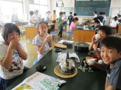 子どもたちは「苦い」とか「おいしい」とかいろいろな反応でしたが、楽しそうに実習しました。