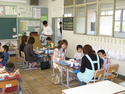お母さんと食べる給食は、格別に美味しかったようです。