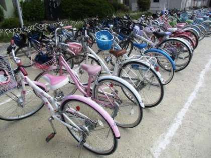 男の子は黒や青が、女の子は淡い色の自転車が多い。