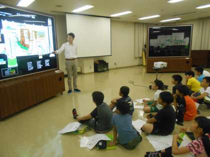 中央制御室のモニターでごみが燃えている様子や,大きなクレーンでごみピットのごみをつかみ焼却炉に入れる様子を見た時には,子どもたちから歓声が上がりました。