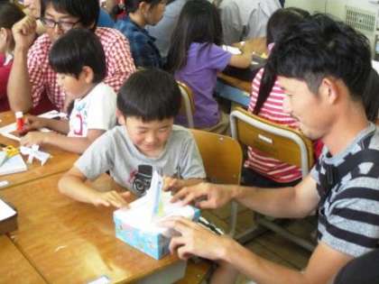 1年生は3時間目に「トントン紙ずもう」を作りました。