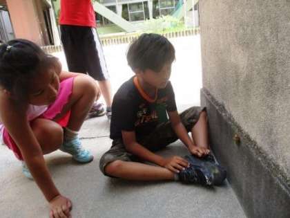 コンクリートの壁に羽化したばかりのアブラゼミがいました。