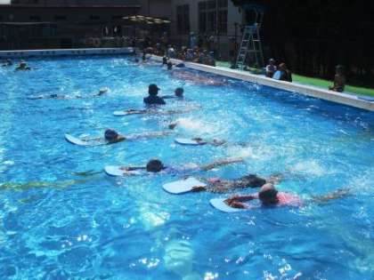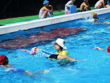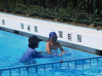 苦手な子の不安を取り除くために、担任の先生が手を添えて指導します。