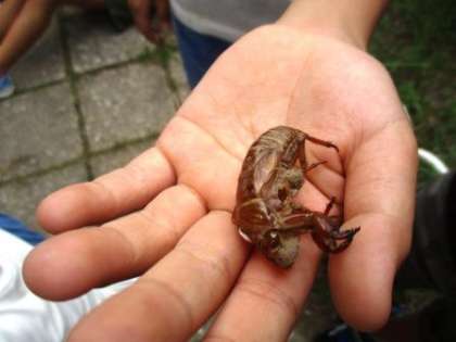 男の子が観察もそこそこに、セミの抜け殻を見せてくれました。