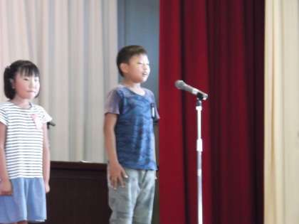 生活委員長として、毎朝あいさつ運動をがんばったことを話しました。本当に毎朝よくがんばってくれていますよ。2学期もお願いします。