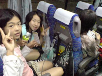普通なら疲れて帰りのバスではぐっすり眠ってるはずなのに…なぜかバスレクで盛り上がってます。マジカルバナナにビンゴ♪