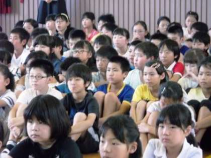 さあ皆さん、校長先生に顔をしっかりと見せてください。ずいぶん日焼けした人もいますね。みんなとてもよい顔をしていますね。心なしか、1学期の終業式に見た顔より、少しきりりとたくましくなったように見えますね。