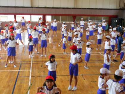 授業の終わりには,見違えるほど1年生のみんなはラジオ体操が上手くなっていました。