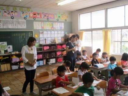 鬼崎北保育園と青海こども園の先生方が、1年生の様子を見に来てくれました。